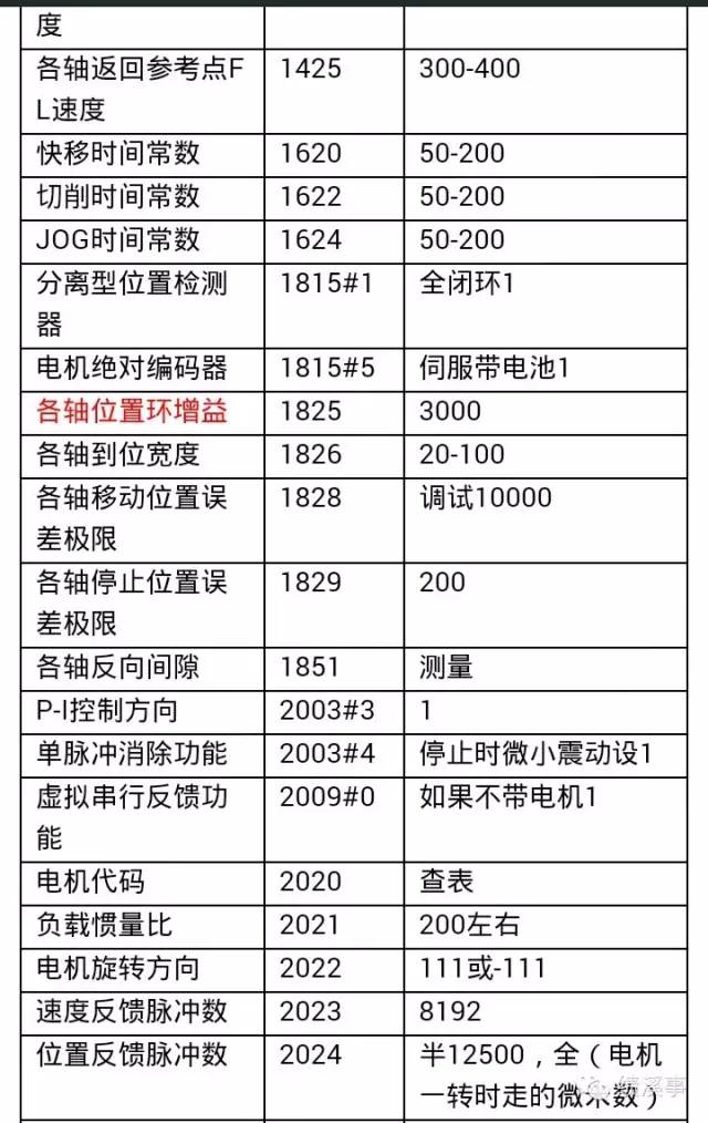 4.3,全閉環(huán)改半閉環(huán):1815#1,把該參數(shù)設(shè)置成0,機(jī)床為半閉環(huán)。然后修改參數(shù)2084和2085,根據(jù)絲杠的螺距重新設(shè)定。